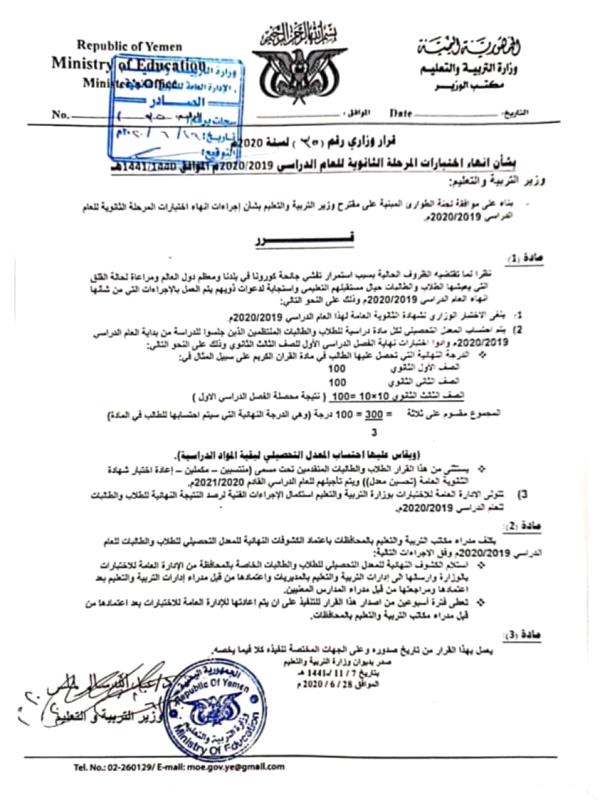 فضلاً، ساهم في تطوير هذه المقالة من خلال إضافة مصادر موثوقة. الوصابي يعقد إجتماعاً بطواقم الملحقيات الثقافية لمناقشة تنفيذ الاتفاقية الموقعة مع البرنامج السعودي لتنمية وإعمار اليمن لصرف المستحقات المالية للمبتعثين. أفاد مدير مجمع كليات التقنية العليا، الدكتور عبداللطيف الشامسي. مرحبا بكم في مدونة التربية و التعليم يمكنكم الإستفادة من كل خدماتنا مجانا و الاطلاع على آخر اخبار التربية والتعليم و التوظيف في قطاع التربية. وزير التربية والتعليم يعتمد جداول امتحانات الدبلومات الفنية للعام الدراسى 2020/2021.